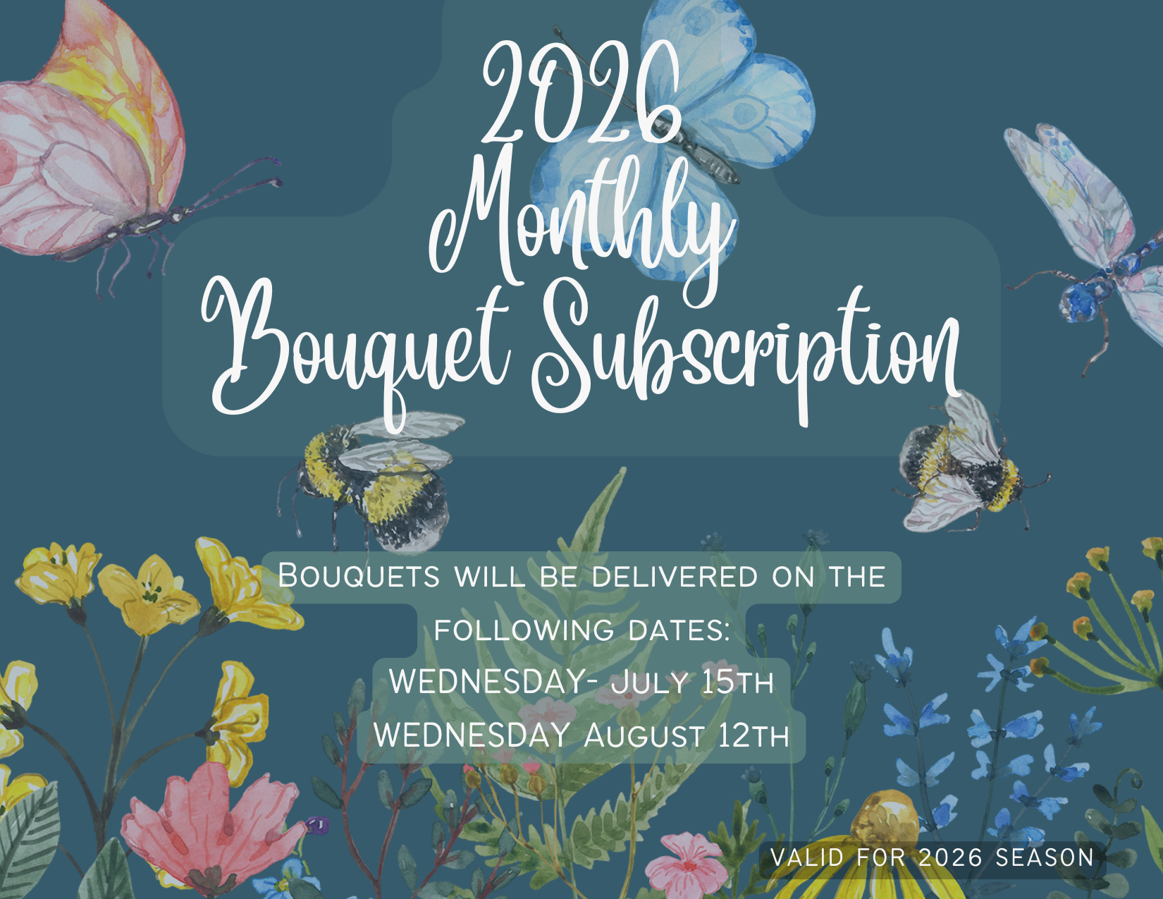Shop Categories: All Bouquet Subscriptions All | Bouquet Subscriptions | 2026 Summer Bouquet Subscription-Monthly Delivery WEDNESDAY July 15th WEDNESDAY August 12th $80.00 Sold out 2026 Summer Bouquet Subscription-Biweekly Delivery (WEDNESDAY July 8th , July 22nd, August 5th, August 19Th) $160.00 Sold out